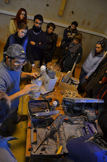 Jesús García Lorente explica la utilización de herramientas para talla de piedra